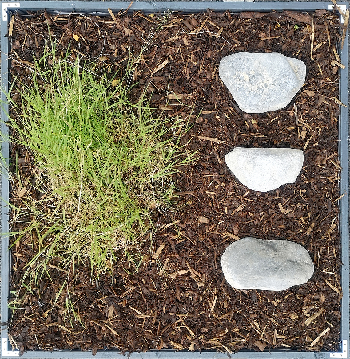 The Sod explores ideas of clan and family. Stone, earth, and wood are brought together from both the homeplaces of the artist’s grandparents and the artist’s current homeplace, creating a material connection between ancestry, land, and identity.