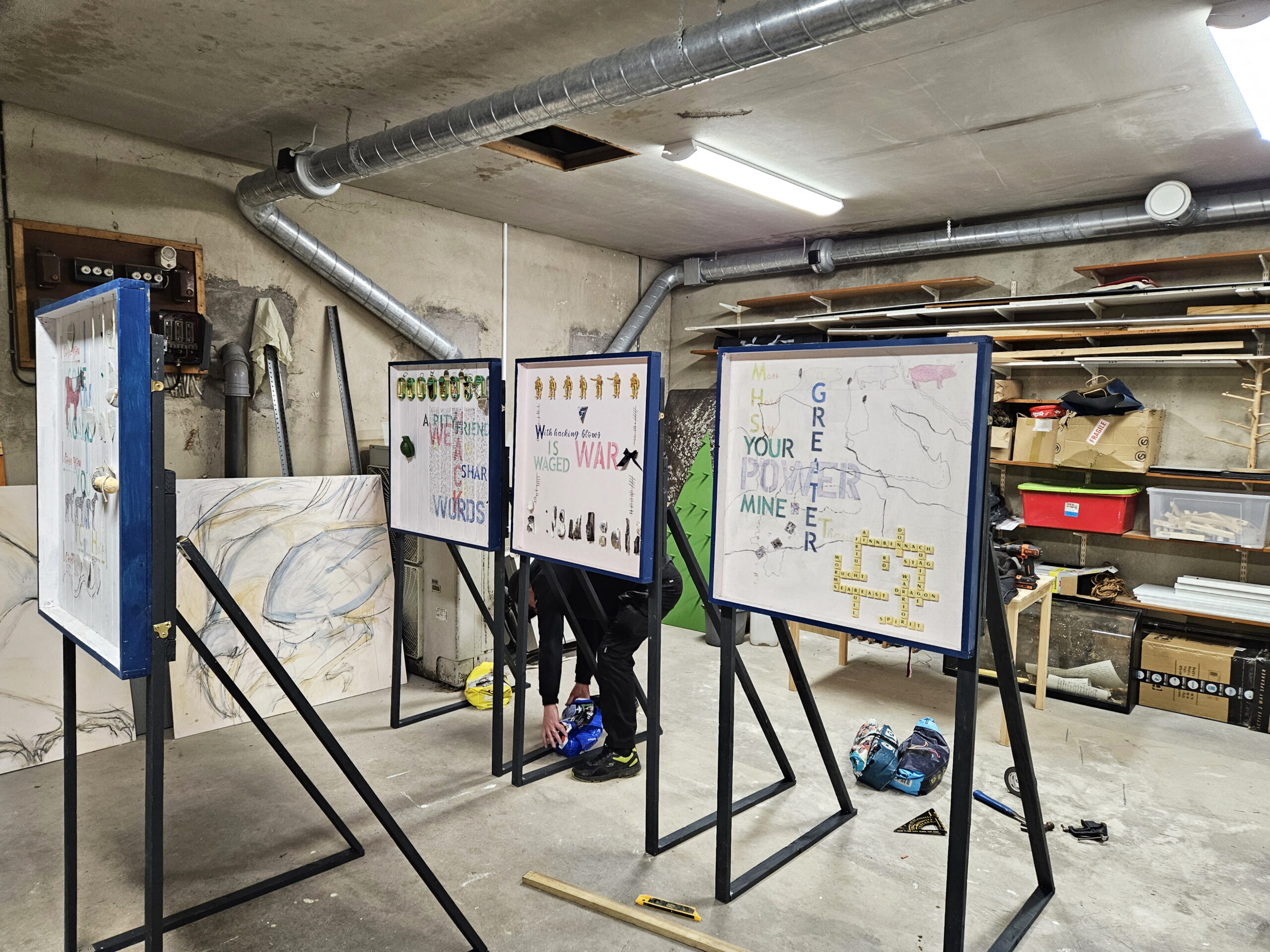 The artist was present on site for three days each week, engaging directly with the public and inviting conversations around personal experiences and perspectives on conflict. These exchanges became integral to the work’s evolution, shaping both its physical form and conceptual direction.